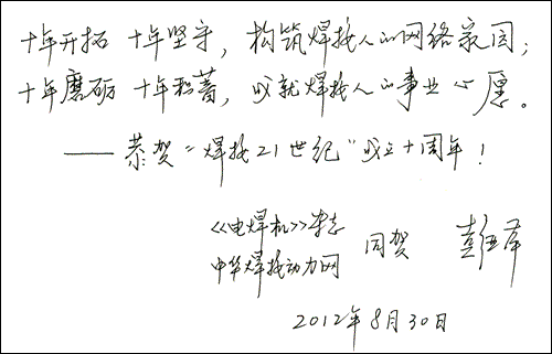 中国科学院院士潘际銮教授在接受本站采访时为本站题词