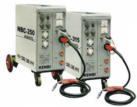 结构和用途 NBC系列半自动气体保护焊机,按额定焊接电流分200、250、和315三种规格型号。焊机的焊接电源和送丝机构集装在同一机壳内,配以焊枪和气源,即组成整套焊接设备。