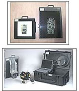 这套设备即可以由可充电电池供电使用一个小时,也可以由110/220v的交流电源供电,甚至可以通过一个整流器使用车载电源。这套设备包括vidisco平滑面板成像仪,一卷轻质量的缠绕电缆,一个高品质的笔记本电脑和X射线源,所有的元件都装在一个有轮子并且防水的Pelican箱子内。